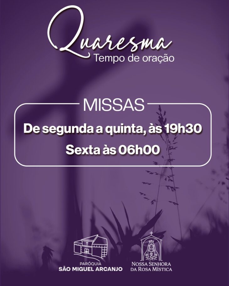 AVISOS PAROQUIAS SEMANAIS Período de 01 a 07/03/2026 Na Quaresma vai ter missa todos dias – segunda a quinta às 19h30 – sexta às 6h…