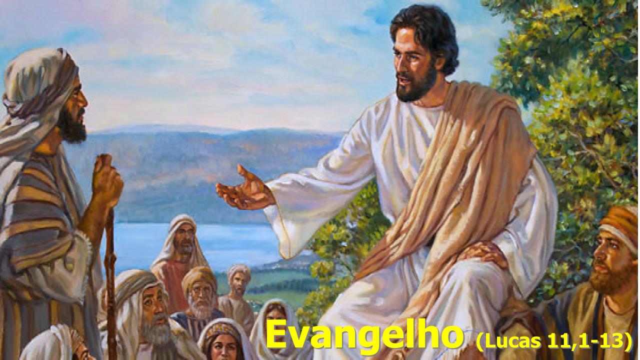 Proclamação do Evangelho de Jesus Cristo segundo Lucas – 1Jesus estava rezando num certo lugar. Quando terminou, um de seus discípulos pediu-lhe: “Senhor, ensina-nos a rezar, como também João ensinou a seus discípulos”. 2Jesus respondeu: “Quando rezardes, dizei: ‘Pai, santificado seja o teu nome. Venha o teu Reino. 3Dá-nos a cada dia o pão de que precisamos 4e perdoa-nos os nossos pecados, pois nós também perdoamos a todos os nossos devedores; e não nos deixes cair em tentação’”. 5E Jesus acrescentou: “Se um de vós tiver um amigo e for procurá-lo à meia-noite e lhe disser: ‘Amigo, empresta-me três pães, 6porque um amigo meu chegou de viagem e nada tenho para lhe oferecer’, 7e se o outro responder lá de dentro: ‘Não me incomodes! Já tranquei a porta, e meus filhos e eu já estamos deitados; não me posso levantar para te dar os pães’, 8eu vos declaro: mesmo que o outro não se levante para dá-los porque é seu amigo, vai levantar-se ao menos por causa da impertinência dele e lhe dará quanto for necessário. 9Portanto, eu vos digo, pedi e recebereis; procurai e encontrareis; batei e vos será aberto. 10Pois quem pede, recebe; quem procura, encontra; e, para quem bate, se abrirá. 11Será que algum de vós que é pai, se o filho pedir um peixe, lhe dará uma cobra? 12Ou ainda, se pedir um ovo, lhe dará um escorpião? 13Ora, se vós, que sois maus, sabeis dar coisas boas aos vossos filhos, quanto mais o Pai do céu dará o Espírito Santo aos que o pedirem!”
