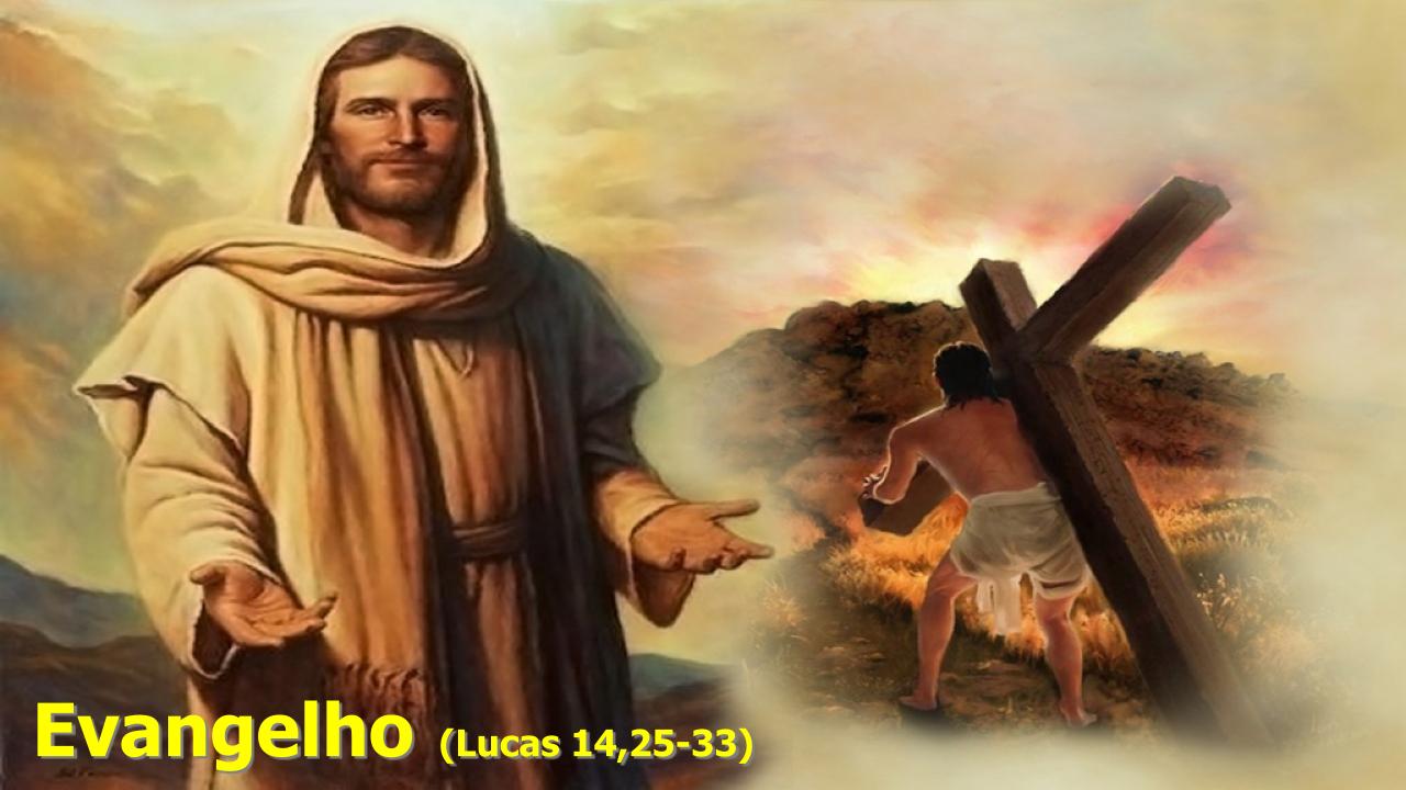 Proclamação do Evangelho de Jesus Cristo segundo Lucas – Naquele tempo, 25grandes multidões acompanhavam Jesus. Voltando-se, ele lhes disse: 26“Se alguém vem a mim, mas não se desapega de seu pai e sua mãe, sua mulher e seus filhos, seus irmãos e suas irmãs e até da sua própria vida, não pode ser meu discípulo. 27Quem não carrega sua cruz e não caminha atrás de mim não pode ser meu discípulo. 28Com efeito, qual de vós, querendo construir uma torre, não se senta primeiro e calcula os gastos, para ver se tem o suficiente para terminar? Caso contrário, 29ele vai lançar o alicerce e não será capaz de acabar. E todos os que virem isso começarão a caçoar, dizendo: 30‘Este homem começou a construir e não foi capaz de acabar!’ 31Ou ainda, qual o rei que, ao sair para guerrear com outro, não se senta primeiro e examina bem se, com dez mil homens, poderá enfrentar o outro, que marcha contra ele com vinte mil? 32Se ele vê que não pode, enquanto o outro rei ainda está longe, envia mensageiros para negociar as condições de paz. 33Do mesmo modo, portanto, qualquer um de vós, se não renunciar a tudo o que tem, não pode ser meu discípulo!”