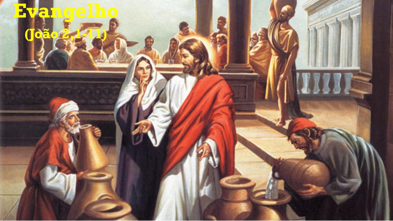 Proclamação do Evangelho de Jesus Cristo segundo João – Naquele tempo, 1houve um casamento em Caná da Galileia. A mãe de Jesus estava presente. 2Também Jesus e seus discípulos tinham sido convidados para o casamento. 3Como o vinho veio a faltar, a mãe de Jesus lhe disse: “Eles não têm mais vinho”. 4Jesus respondeu-lhe: “Mulher, por que dizes isso a mim? Minha hora ainda não chegou”. 5Sua mãe disse aos que estavam servindo: “Fazei o que ele vos disser”. 6Estavam seis talhas de pedra colocadas aí para a purificação que os judeus costumam fazer. Em cada uma delas cabiam mais ou menos cem litros. 7Jesus disse aos que estavam servindo: “Enchei as talhas de água”. Encheram-nas até a boca. 8Jesus disse: “Agora tirai e levai ao mestre-sala”. E eles levaram. 9O mestre-sala experimentou a água, que se tinha transformado em vinho. Ele não sabia de onde vinha, mas os que estavam servindo sabiam, pois eram eles que tinham tirado a água. 10O mestre-sala chamou então o noivo e lhe disse: “Todo o mundo serve primeiro o vinho melhor e, quando os convidados já estão embriagados, serve o vinho menos bom. Mas tu guardaste o vinho melhor até agora!” 11Este foi o início dos sinais de Jesus. Ele o realizou em Caná da Galileia e manifestou a sua glória, e seus discípulos creram nele.