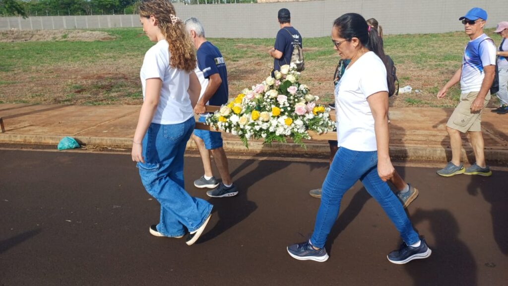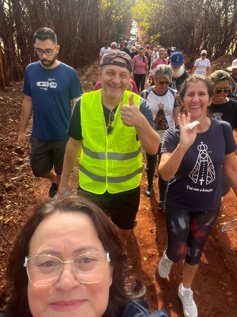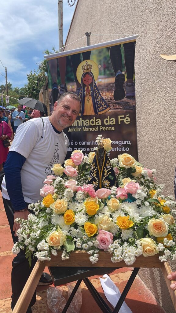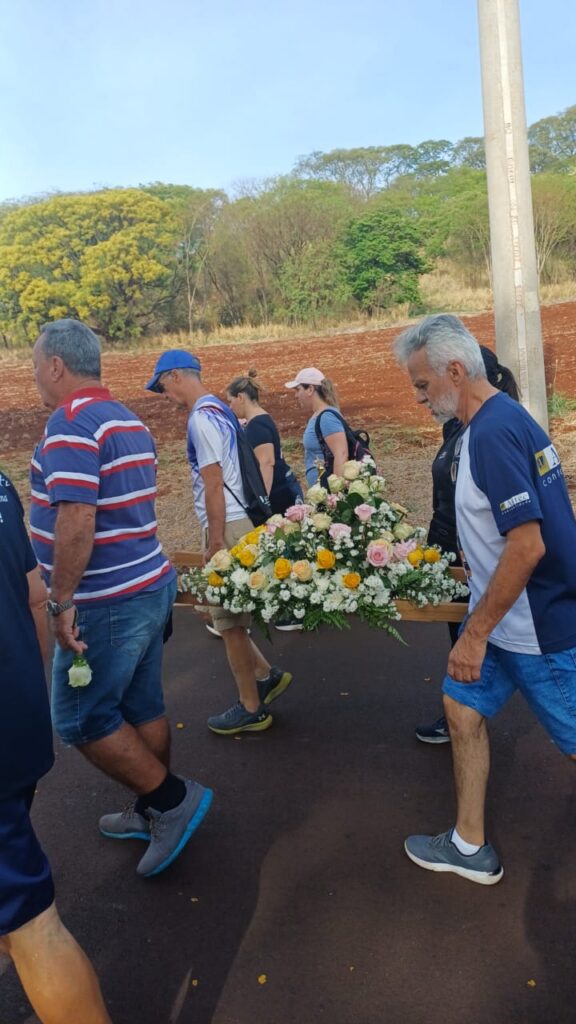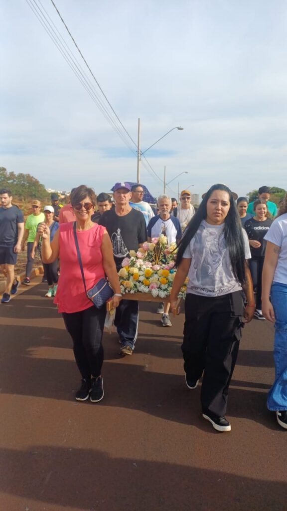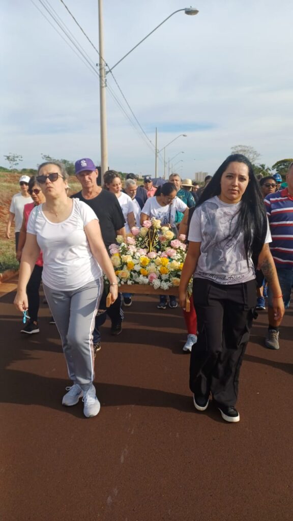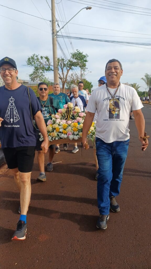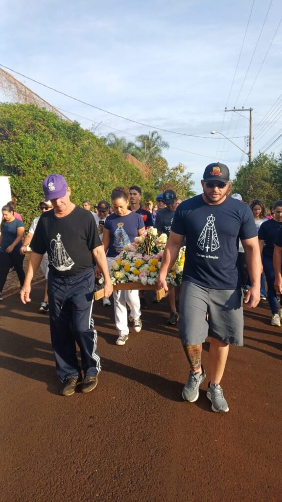 Sentimento de muitas Bençãos e Gratidão imensa poder estar novamente presente na caminhada de Nossa Senhora Aparecida junto a nossa comunidade e poder também carregar o andor junto da minha filha e com as Bençãos de Nossa Senhora Aparecida 🙏🏼🌹🙏🏼
