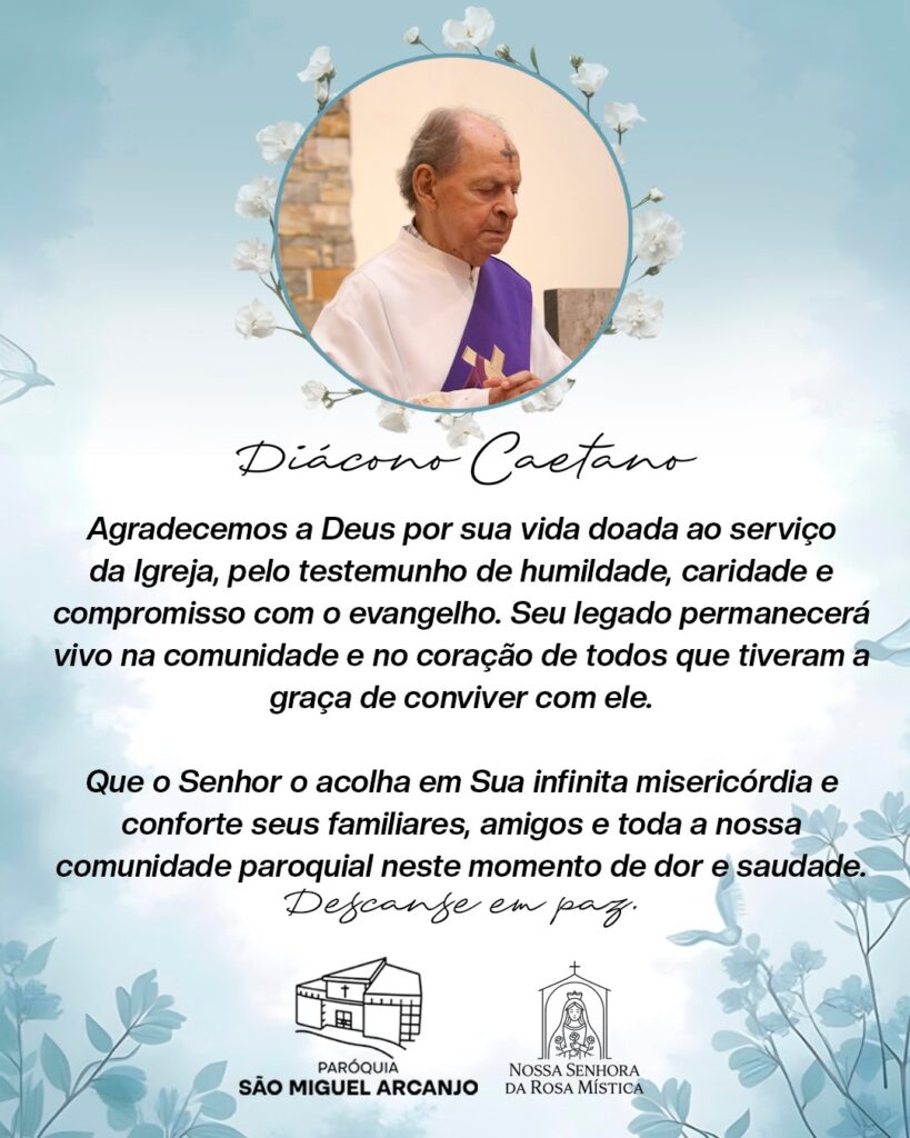Sentiremos muita saudade Caetano. Homem de fé, dedicado no servir à Deus e à família. Jesus, Maria e São José o receba. Que brilhe a luz de Deus sobre ti. Vai em paz. Deus te conceda o repouso eterno.